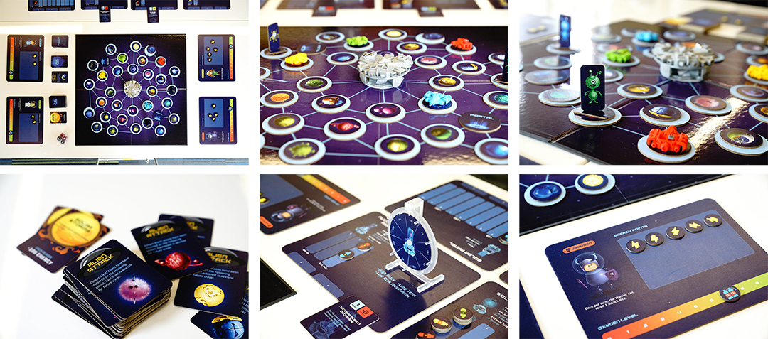 - Disaster Event: At the end of each round, players have to reveal one event card. There are 3 types of event cards: Big disaster, Alien attack, Planets sudden destructions