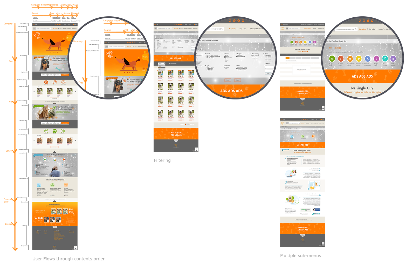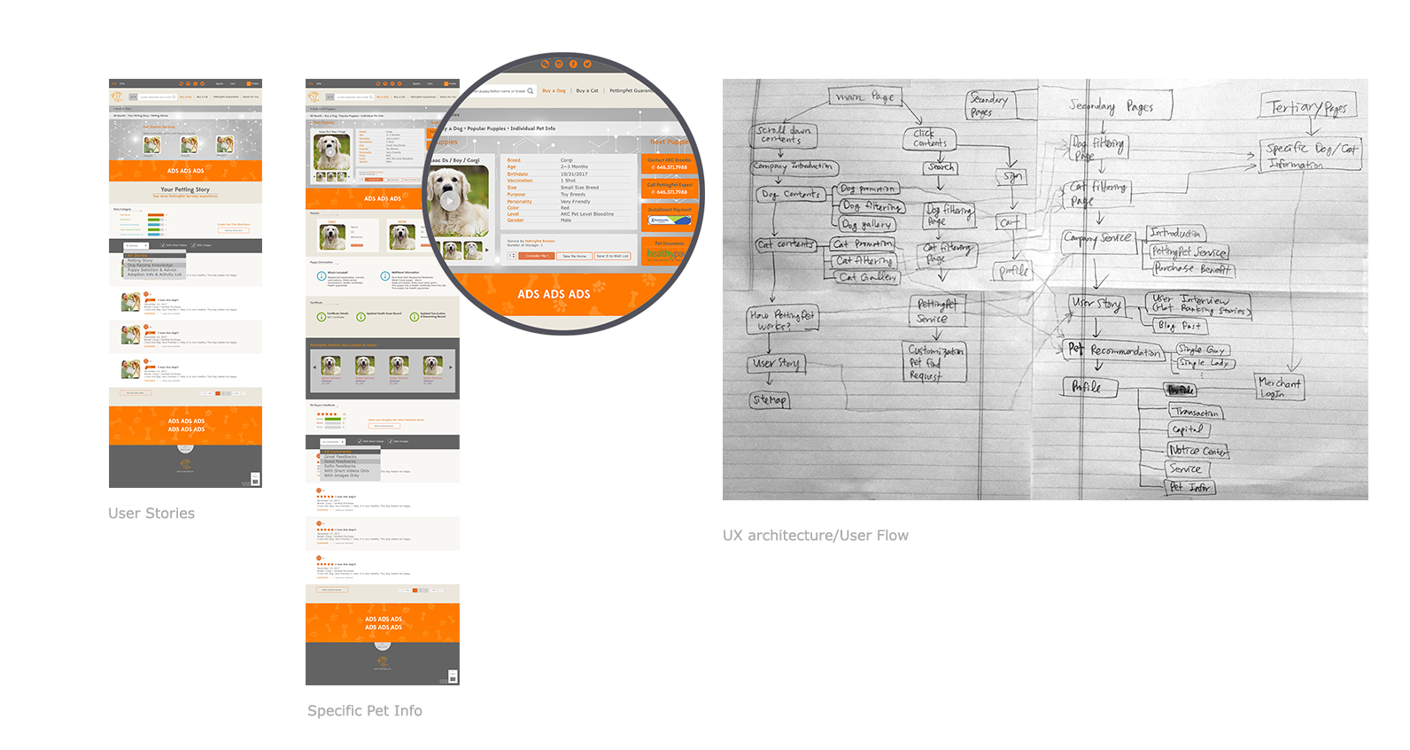 Through analyzing competitor’s unique features and design emphasis, I could learn quickly online pet shop’s trend, each company’s focal point, different formats of pet photo gallery, filtering functions.