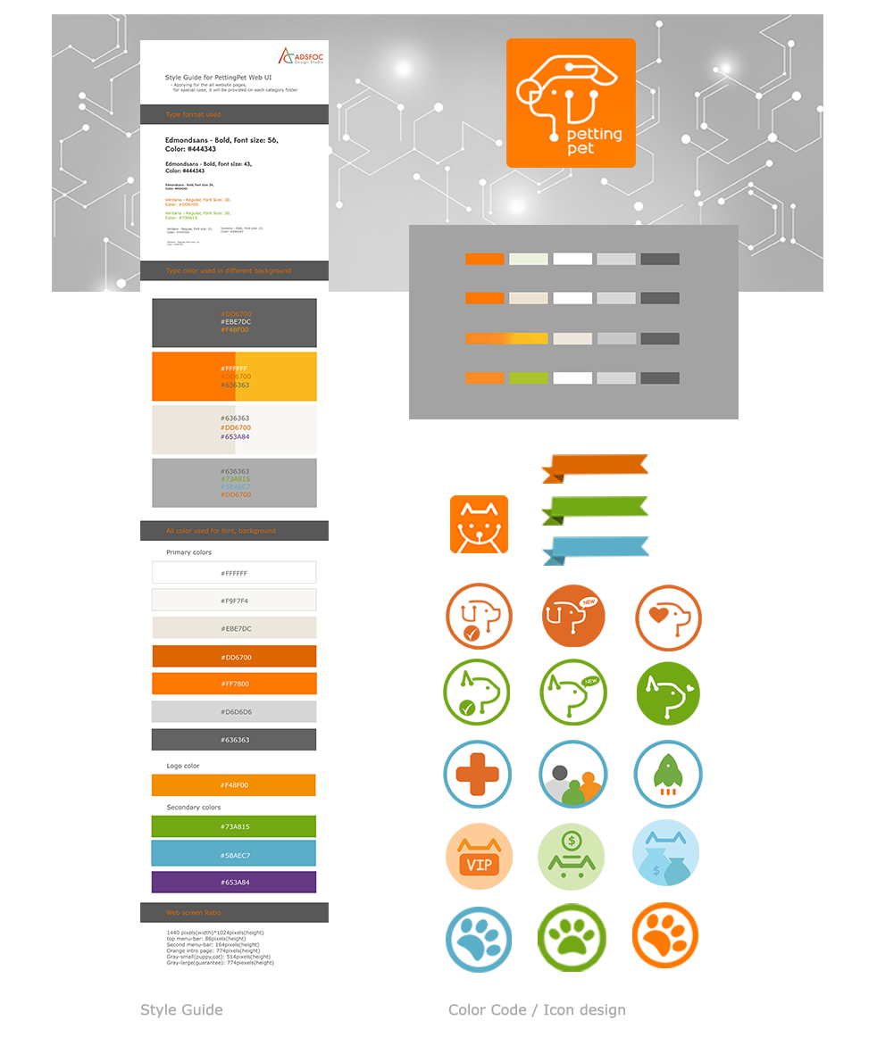 Client asked to re-design their previous online pet shop sites to enhance better performance of the usability, UX and also nicer branding and UI works that fit to their company philosophy and theme. Client’s constraint was to use the main color of orange and express the theme of Tech&Pet for branding. Logo branding was given.