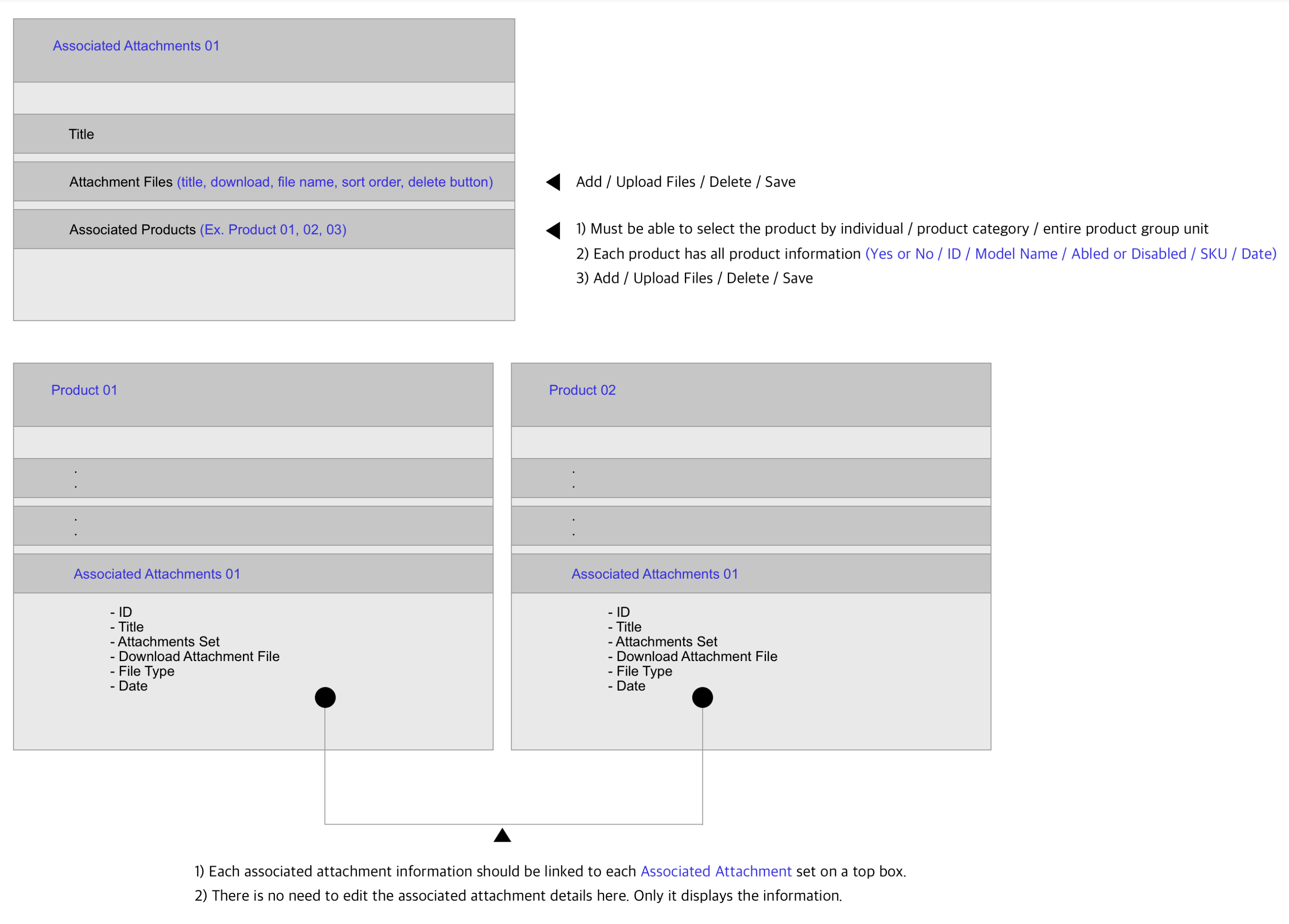 Associated Attachment feature (group associated file attachment display in a Documents section in a product detail page)>